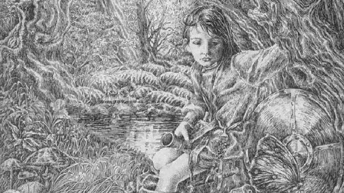 The young woman, a girl called Alys, explains, “A nanny I am to a young lad called Dyvan. I fell asleep beneath this ipp, under some enchantment I reckon, and the boy wandered off and crossed the Laughing Brook where I dare not go.”