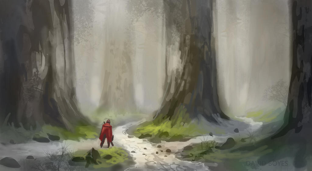 The Lortmil Queen carefully folded the garments of Esmerin and packed them away in her sack. She girded herself in her mithril armor and strapped her sword to her side, and pulled a red travelling cloak overtop. Slinging the sack over her shoulder, she set off toward Courwood. Not long had she walked before passing the burnt ruin of Defile’s End. The blackened and broken stones made her shudder. She offered prayers for the fallen.